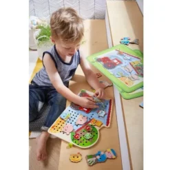 ‘Balletdroom’ is een setje poppenkleding van het Duitse merk Haba. Het balletpakje, de tutu, bolero en beenwarmers maakt van iedere lievelingspop een prima ballerina. De houten klerenhanger zorgt ervoor dat kinderen de poppenkleertjes weer netjes op kunnen hangen.